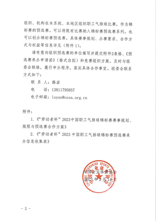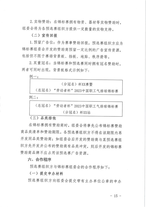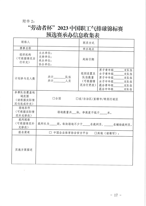 关于征集 “劳动者杯”2023中国职工气排球锦标赛预选赛合作方的通知