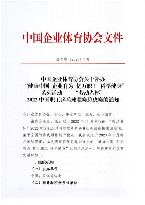 优米下载app关于补办“健康中国 企业有为 亿万职工 科学健身”系列活动一“劳动者杯”2022中国职工乒乓球联赛总决赛的通知
