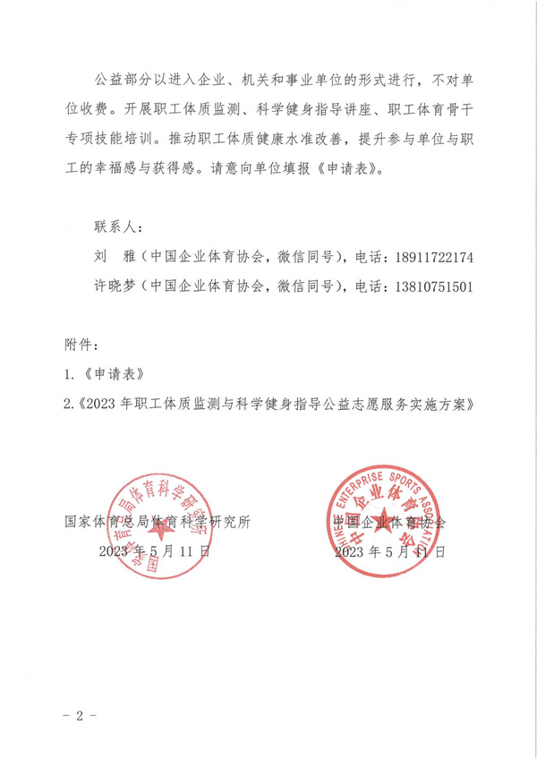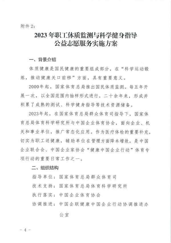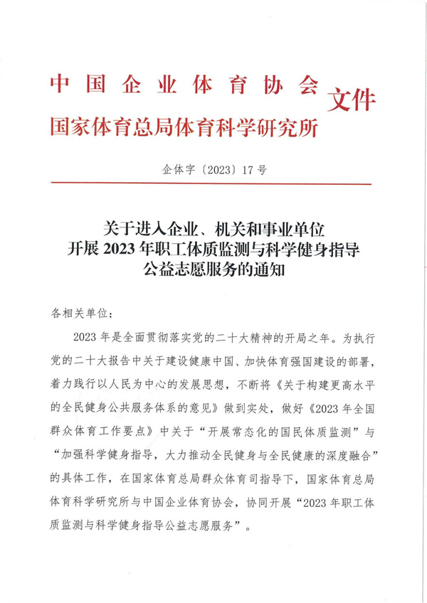 关于进入企业、机关和事业单位开展2023年职工体质监测与科学健身指导公益志愿服务的通知