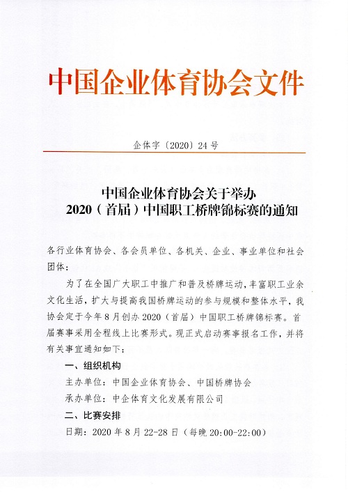 附:2020年(首届)职工桥牌锦标赛的通知