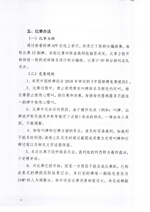 1、采用中国桥牌协会2018年审定的《中国桥牌竞赛规则》。