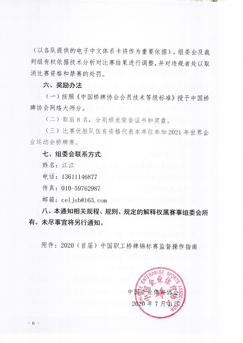 附件:全国职工健康促进工程•健康运动 2020中国职工桥牌锦标赛监督操作指南