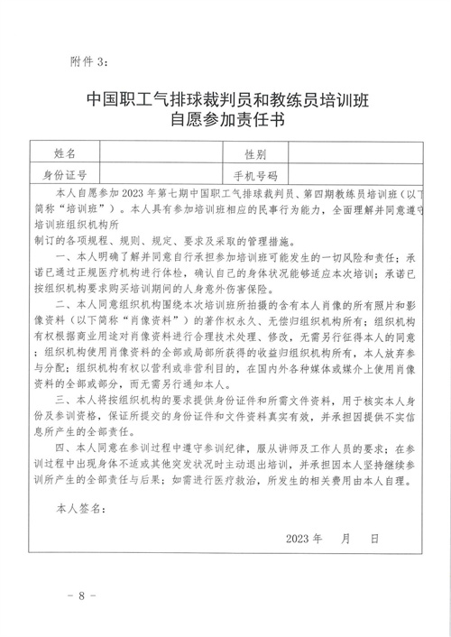 关于举办2023年中国职工第七期气排球裁判员及第四期教练员培训班的通知