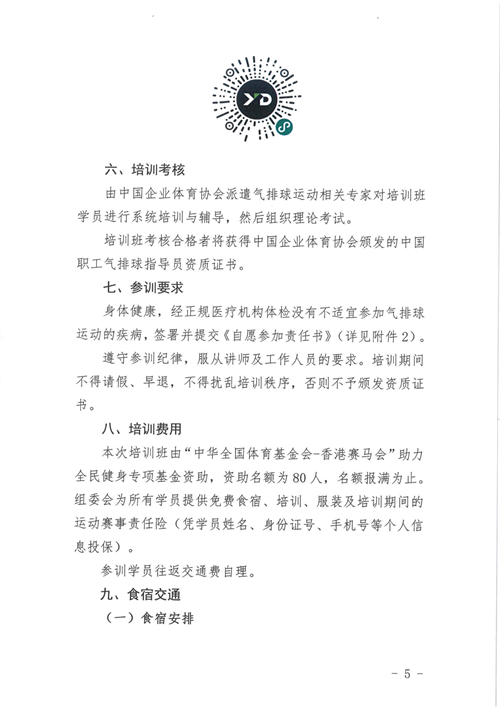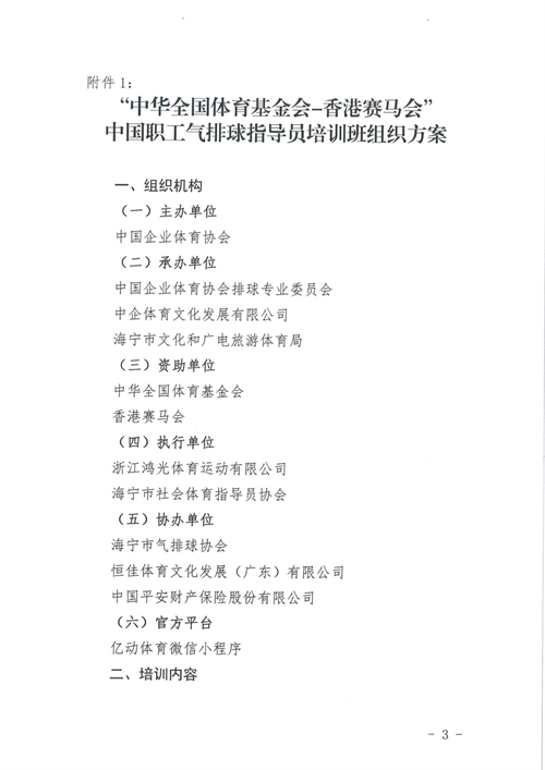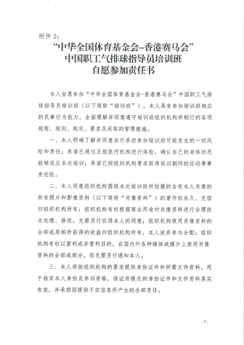 关于举办“中华全国体育基金会-香港赛马会”中国职工气排球指导员培训班的通知