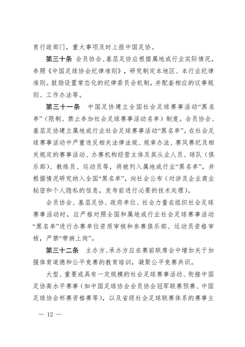 关于转发《中国足球协会社会足球赛事活动管理办法(试行)》的通知