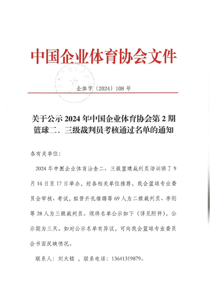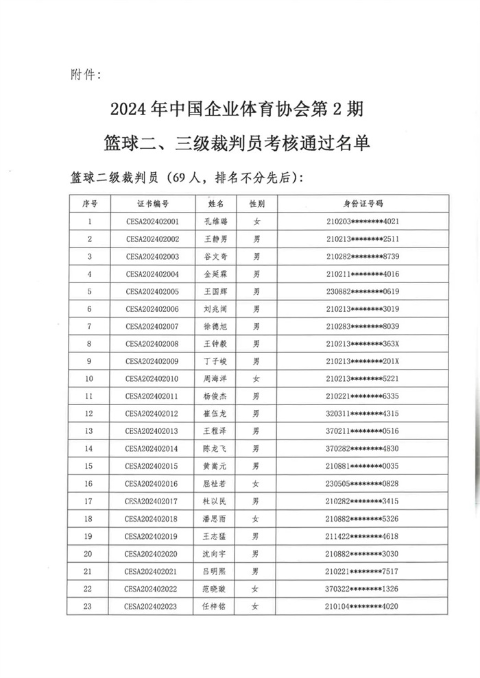 关于公示2024年优米下载app第2期篮球二、三级裁判员考核通过名单的通知