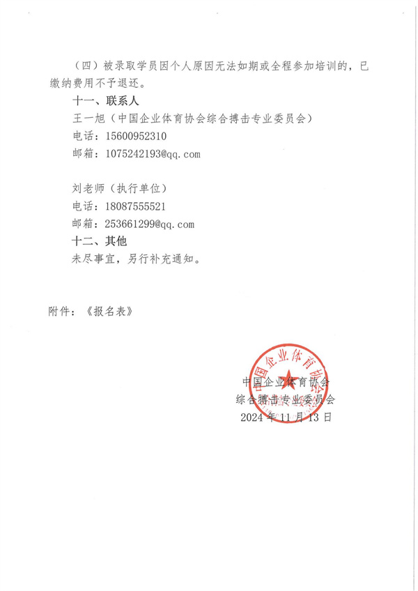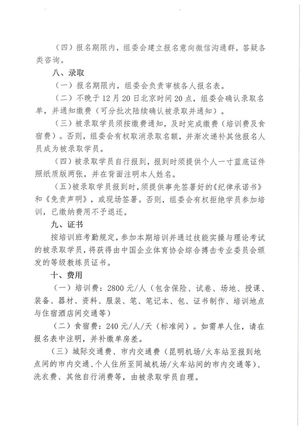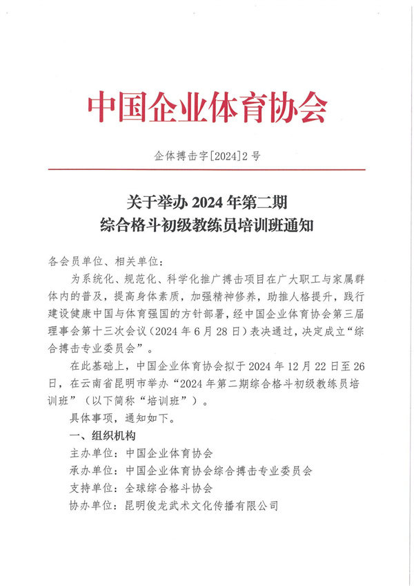 关于举办2024年第二期综合格斗初级教练员培训班通知