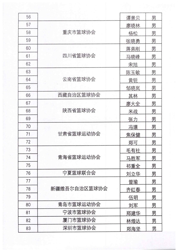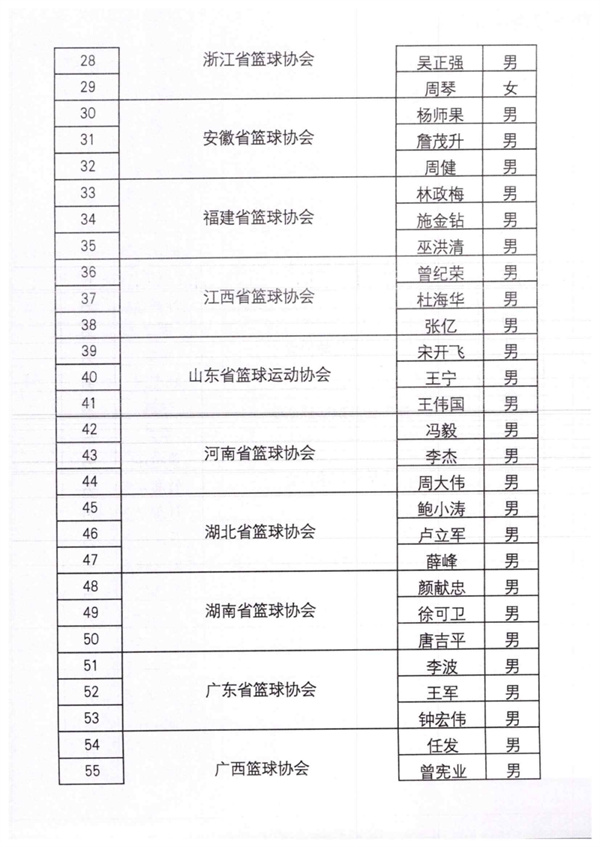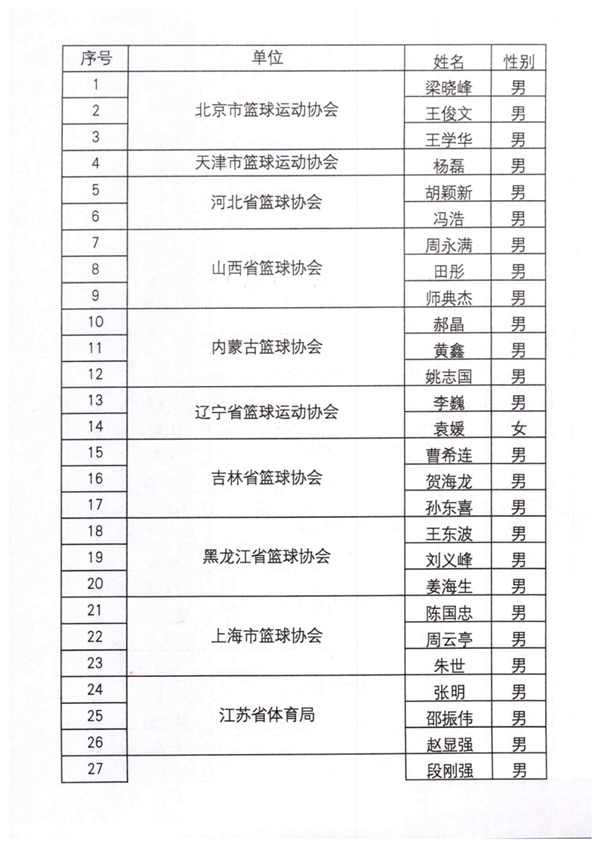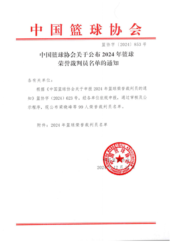 中国篮球协会关于公布2024年篮球荣誉裁判员名单的通知