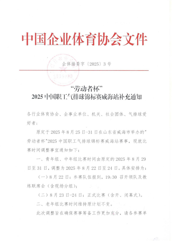 "劳动者杯"2025年中国职工气排球锦标赛威海站补充通知