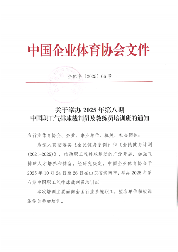 关于举办2025年第八期中国职工气排球裁判员及教练员培训班的通知