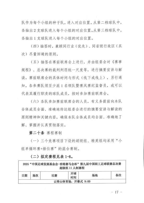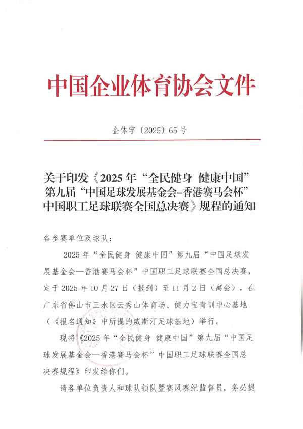 关于印发《2025年“全民健身 健康中国第九届“中国足球发展基金会-香港赛马会杯’中国职工足球联赛全国总决赛》规程的通知