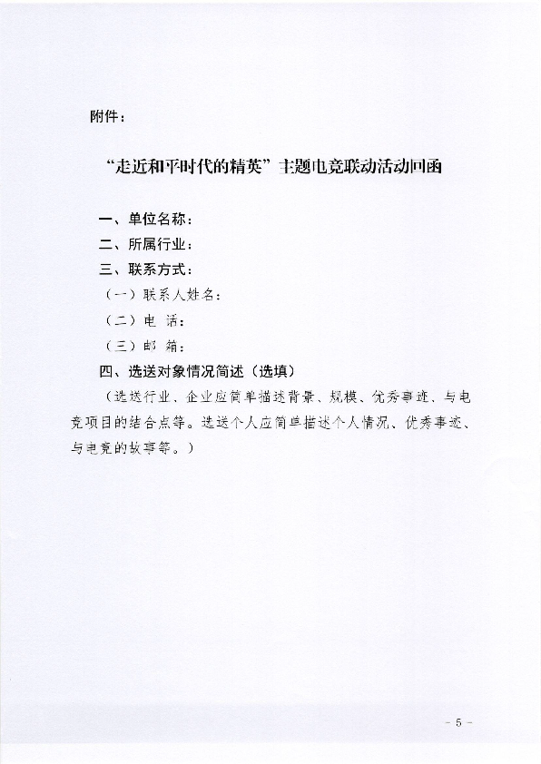 附件:“走近和平时代的精英”主题电竞联动活动回函