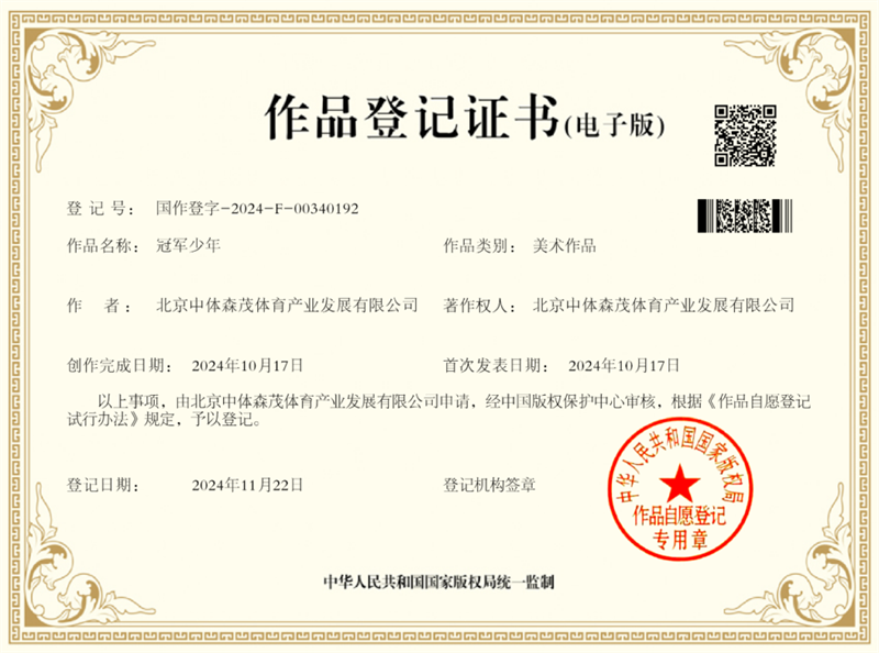 “冠军少年”与“冠军品质”已获国家版权局作品登记证书