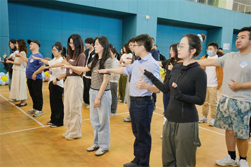 活动以青年群体喜爱的“破冰拓展”形式展开,通过创意环节设计迅速拉近彼此距离。双人油画拼图考验默契协作,蒙眼投喂游戏传递信任与温暖,升级版“两人三足”和趣味混双羽毛球赛掀起阵阵欢笑,国标舞环节更让青年们在优雅旋律中展现风采,现场气氛热烈,掌声与欢呼声此起彼伏。