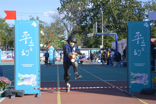 赛道上,一幕幕暖心又励志的场景不断上演:有的小选手身姿矫健,如同真正的骑士般从容不迫,跨越障碍一气呵成,赢得现场阵阵喝彩;有的小选手在障碍前不慎“马失前蹄”,竹竿滑落、身体踉跄,但他们没有丝毫退缩,在家长和同伴们“加油!再来一次!”的鼓励声中,迅速爬起扶起竹竿,重新投入比赛,稚嫩的脸上写满了不服输的韧劲;还有的小选手主动放慢速度,等待身后节奏稍缓的队友,用小小的身影诠释着协作的意义。