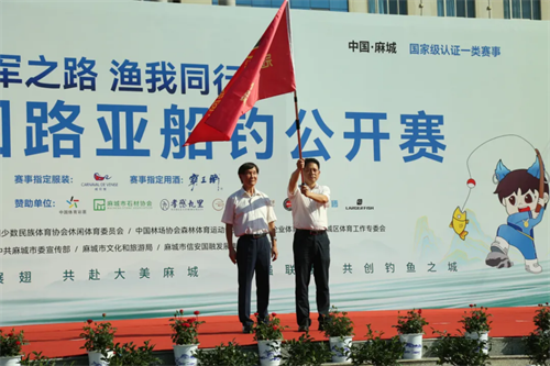 冠军之路全国组委会副主任、国家体育总局冬季运动管理中心原副主任朱承翼向中共麻城市委常委、市委宣传部部长罗俊授予了“冠军之路·渔我同行”系列品牌赛事旗帜,这标志着麻城市人民政府与冠军之路全国组委会后续长期深度合作的开端。