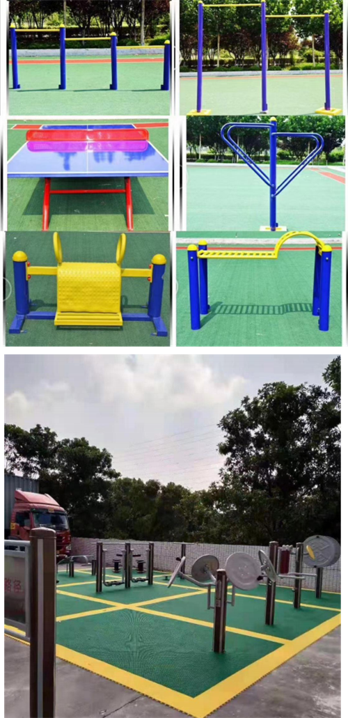 5. 健身器材部分:NSCC 认证路径、校园乒羽篮足排小器材器材、场地围网、智能体育公园、室外健身路径等。