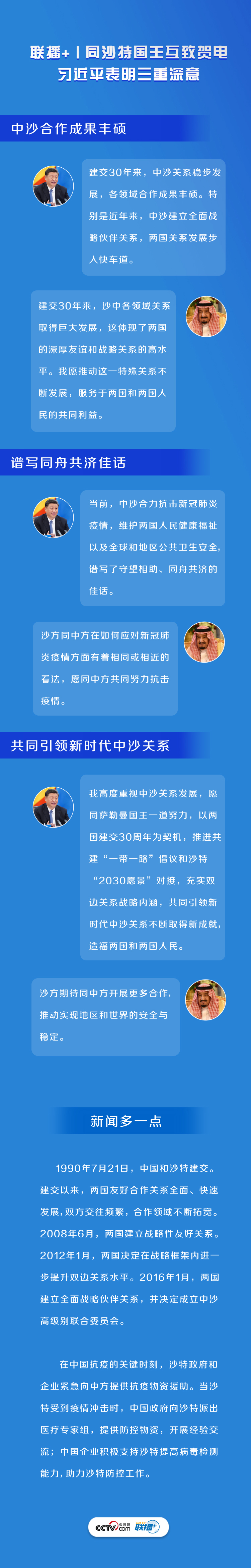 中国与沙特的交往和友谊源远流长,7月21日是中沙建交30周年纪念日。习近平主席同沙特国王萨勒曼互致贺电传递了哪些重要信息,央视网《联播+》为您梳理。