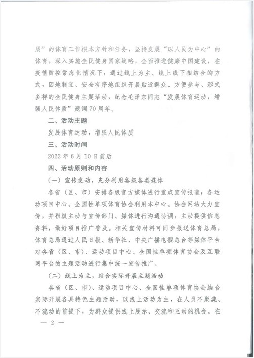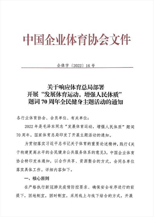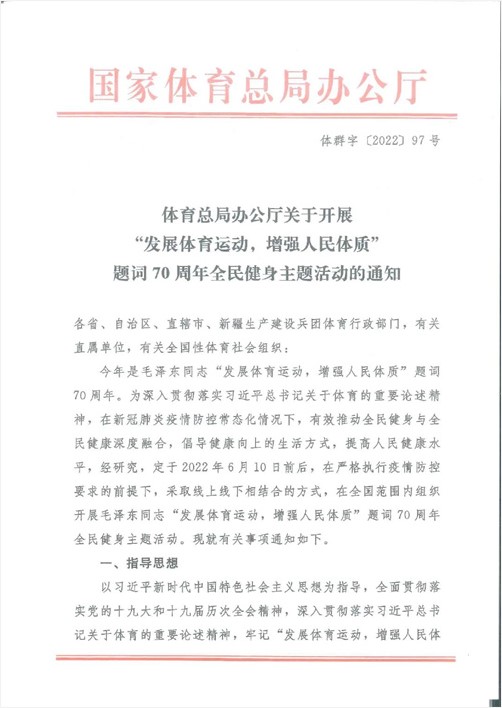 关于响应体育总局部署开展“发展体育运动,增强人民体质”题词70周年全民健身主题活动的通知