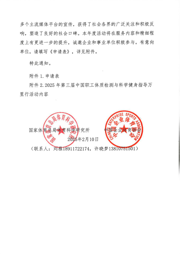 1、关于开展2025第三届中国职工体质检测与科学健身指导万里行的通知