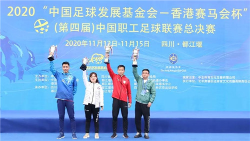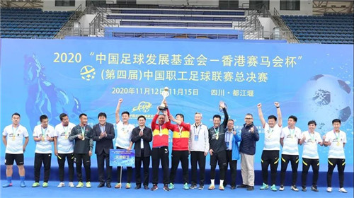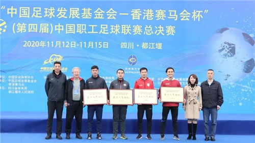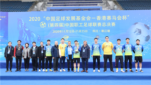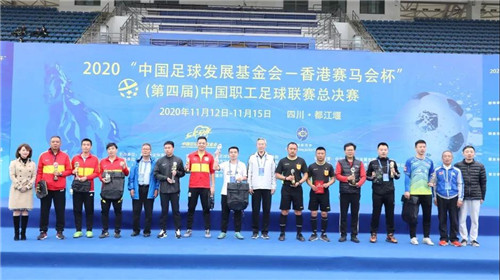11月15日,经历了四个比赛日的激烈争夺,2020“中国足球发展基金会 - 香港赛马会杯”中国职工足球联赛总决赛在都江堰凤凰体育场落下了帷幕。来自公安、铁路、煤炭、航空、冶金、汽车、电子、通信、林业等多个行业的31支职工足球队齐聚都江堰。经过60场激烈比拼,2020中国职工足球联赛安全、平稳、有序完赛。这离不开所有参赛队员、竞赛人员以及前方后方工作人员的共同努力,同样离不开社会各界对中国职工足球联赛的支持和关注。