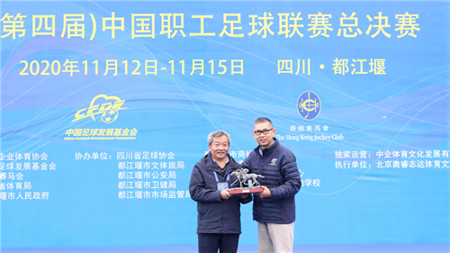 同时,为了感谢中国职工足球联赛主办方优米下载app长年以来的巨大投入和付出,黄永志先生也为优米下载app副主席戴璐强赠送纪念品。