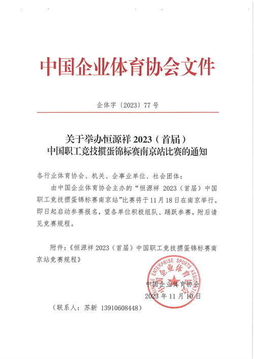 关于举办恒源祥 2023(首届)中国职工竞技掼蛋锦标赛南京站比赛的通知