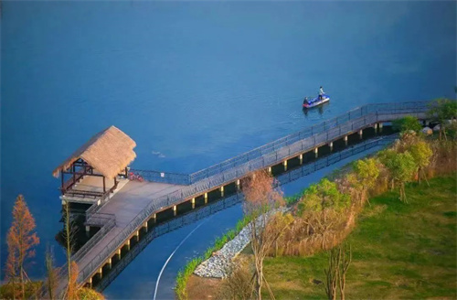 二是“治水减污”修复生态系统。依托自然地势条件,开展城区水系现状提升和流域治理,累计保护水体100余处,修复整治213公里骨干渠系和206公里连通性水系,区域水质逐步达到Ⅲ类标准,保护修复原生植被,设立野生动植物栖息辅助设施,建立鸟类栖息的生态廊道,营造“蛙鸣鸟叫” 的水路生境。