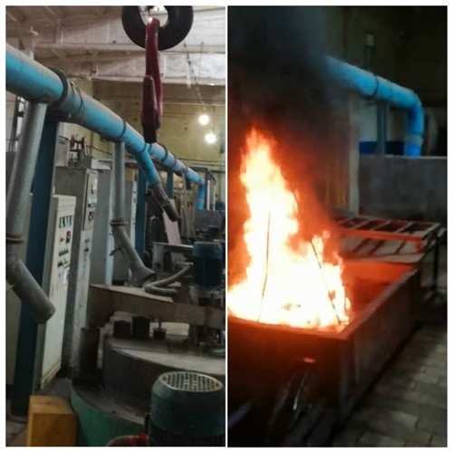 中南工业公司机加车间热处理生产同样存在抽风除尘系统工艺落后,部分集气罩及管路老化,不能有效对产生的废气进行收集处理的问题。热处理生产由于工艺原因,产生废气的设备及点位较多且分散,淬火加热、淬火冷却、回火过程中均会产生废气,上述三类废气是当前传统热处理生产线中难以避免的。