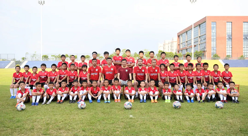 2017年中国职工子女足球亲子课堂北京站—金志扬、曹限东两位指导与优秀小球员合影